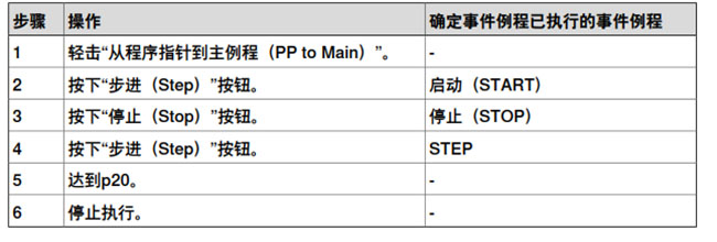 從以下無返回值程序來看,當按下FlexPendant示教器上的“步進(Step)”和“停止 (Stop)”按鈕時,系統(tǒng)便執(zhí)行了“啟動(START)”、“停止(STOP)”和“步進 (Step)”事件例程。
