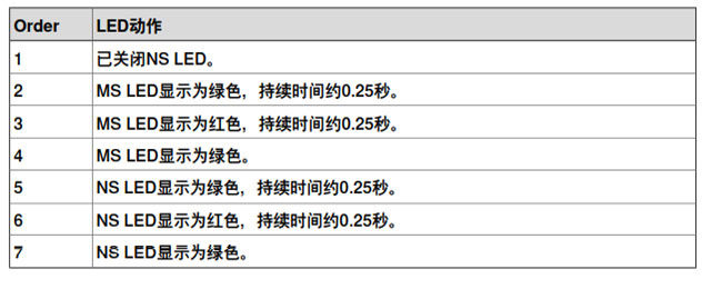 系統啟動時會對MS LED和NS LED進行測試,以檢查是否所有LED都運行正常。該試 運行如下: