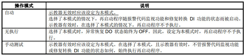 顯示異常恢復 DO (恢復信息DO)的狀態。即使在尚未登錄異常恢復 DO 的情況下,也可以觀察其狀態,所以可了解執行再啟動程序,還是執行原程序。