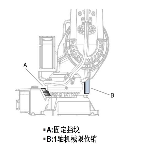 機器人限位維護檢查(如下圖),注:進入機器人工作區域前關閉所有連接到機器人的電源,液壓氣壓源.